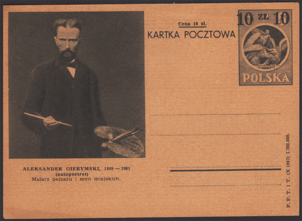 1949 wydanie prowizoryczne, karta 106 z ilustracją 4 - Aleksander Gierymski z nadrukiem typu 15; bardzo dobry stan zachowania. | Fi.Cp121 |