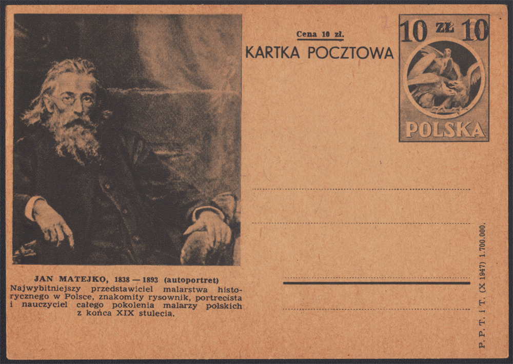 1949 wydanie prowizoryczne, karta 106 z ilustracją 9 - Jan Matejko z nadrukiem typu 15; bardzo dobry stan zachowania. | Fi.Cp121 |