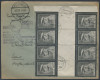 1939 XI Krajowe Zawody Balonów Wolnych o Puchar Przechodni im. A.Wańkowicza w Mościcach, arkusik znaczków dodatkowej opłaty dla przesyłek balonowych przesłanych podczas zawodów, zawierający 8 znaczków w tym dwie parki tête-bêche, w barwach ciemnobrunatnej i sepii, rzadki walor w bardzo ładnym stanie zachowania. | |