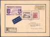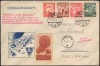 1934 Międzynarodowy Turniej Lotniczy Challenge, seria znaczków z przedrukiem na liście lotniczym wysłanym 7 IX w Warszawie, znaczki skasowane stemplem okolicznościowym "MIĘDZYNARODOWY TURNIEJ LOTNICZY CHALLENGE WARSZAWA PORT LOTNICZY" z wyróżnikiem "d", na odwrocie adnotacja (pisownia oryginalna): "Ten list trzymaj na pamiątkę ponieważ kpt.Bajan polak zwyciężył w Międzynarodowym turnieju lotniczym."; dobry stan zachowania (Myślicki 34 014). | Fi.268-69L Mi.289-90 |