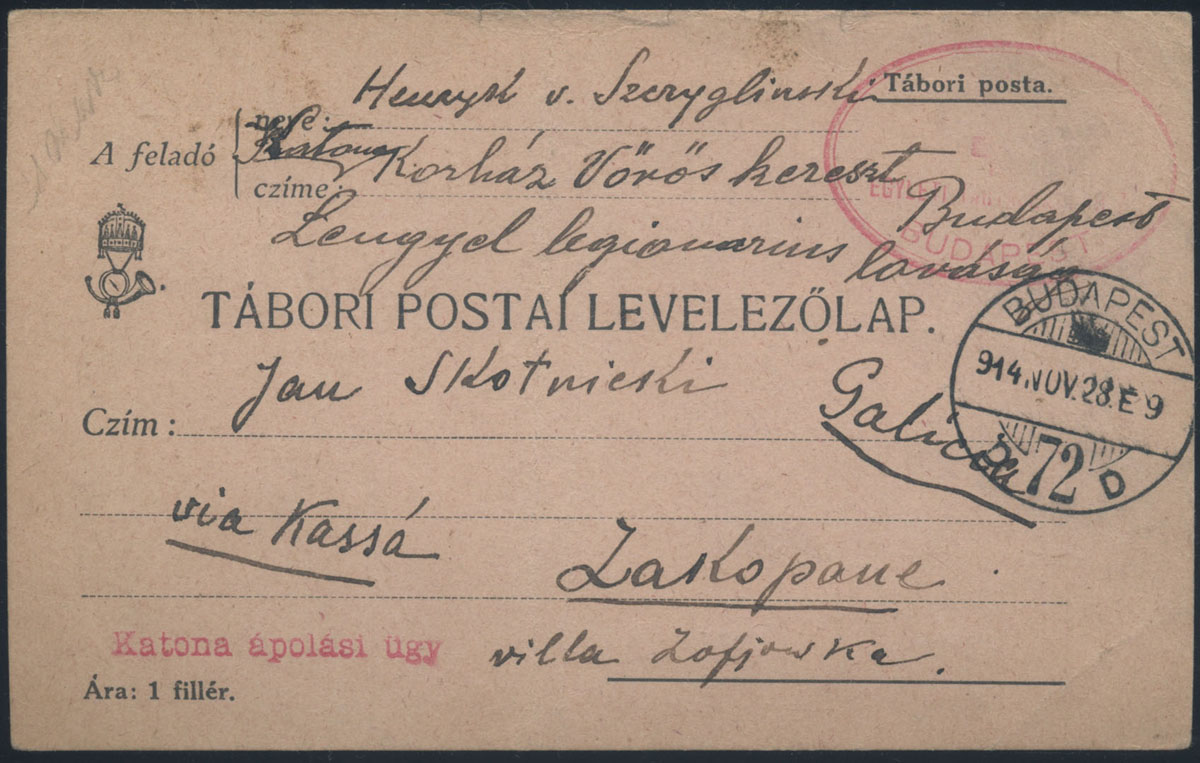 1914 kartka od polskiego jeńca z Budapesztu do Zakopanego. | |