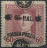 1918 drugie wydanie lubelskie, kasowany znaczek za 45/80 hal. z nadrukiem w kolorze niebieskoczarnym, ładny stan, gwarancja i oznaczenie. | Fi.25b Mi.25I |