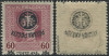 1918 drugie wydanie lubelskie, znaczki z nadrukiem niebieskoczarnym, prawy znaczek z błędem "brak liter TA w POCZTA", gwarancja. | Fi.25bB10 Mi.25I |