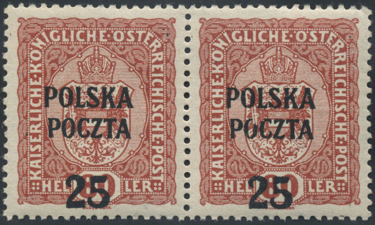 1919 wydanie krakowskie, znaczek za 25/80 hal. z bardzo rzadkim błędem "brak dolnej części litery S", gwarancja Witkowski, Mikstein. | Fi.38 B Mi.48 |