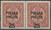 1919 wydanie krakowskie, skrajny znaczek za 25/80 hal. z błędem "uszkodzone obie litery P" unieważniony obiegowo w Krakowie, po lewej ślady krawędzi formy przedrukowej, gwarancja. | Fi.38 B Mi.48 |