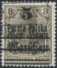 1918 wydanie PP/GGW, parka znaczków za 5/3 fen. z przesuniętym w górę nadrukiem pierwszą formą na anilinowym nadruku GGW; 5 jest na dole zamiast na górze znaczka; prawy znaczek z błędem nadruku nasuniętego z poz.72 "trójkątna chorągiewka 5" (zwykły znaczek tej odmiany Fi.210.-), gwarancja Schmutz. | Fi.9aI B Mi.15I |