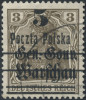1918 wydanie PP/GGW, znaczek z nadrukiem pierwsze formy z błędem "obniżone", duża podlepka, gwarancja i oznaczenie Schmutz. | Fi.9bI B3 Mi.15I |