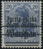 1918 wydanie PP/GGW, znaczek za 20 fen. z rzadkim znacznym przesunięciem w poziomie nadruku pierwszą formą, gwarancja. | Fi.12dI Mi.10Ic |