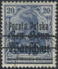 1918 wydanie PP/GGW, znaczek za 20 fen. w kolorze szafirowym z nadrukiem drugą formą (Fi.120.-), gwarancja Gryżewski, z opisem Schmutz. | Fi.12bbII Mi.10IIb |
