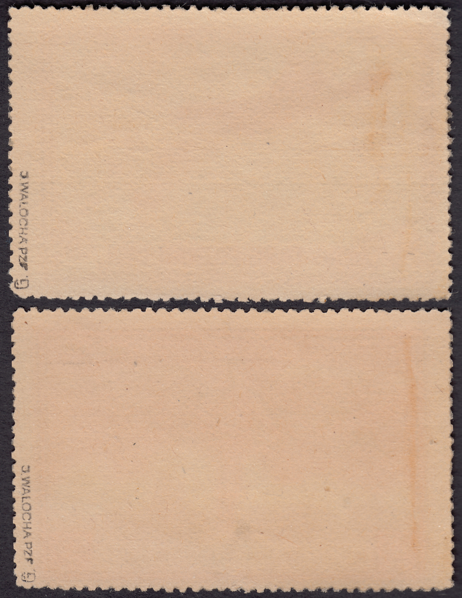 1921 duży orzeł na tarczy barokowej, parka z podwójną perforacją poziomą na górnym marginesie - MK 2. Górny margines przeząbkowany - dodatkowe uderzenie grzebienia nastąpiło na marginesie, grzebień ustawiony do góry nogami. | Fi.137MK2 Mi.173 |