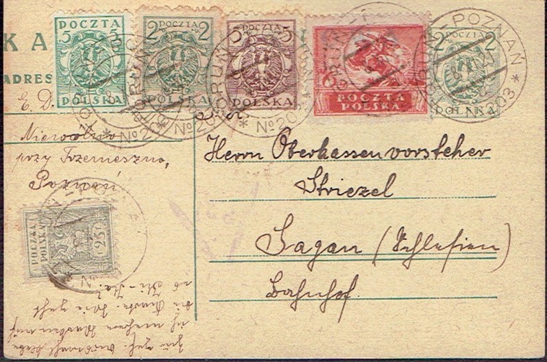1922 kartka z Wrześni nadana 29.08.22 do Niemiec, gwarancja Petriuk. | Fi.115, 119, 125II |