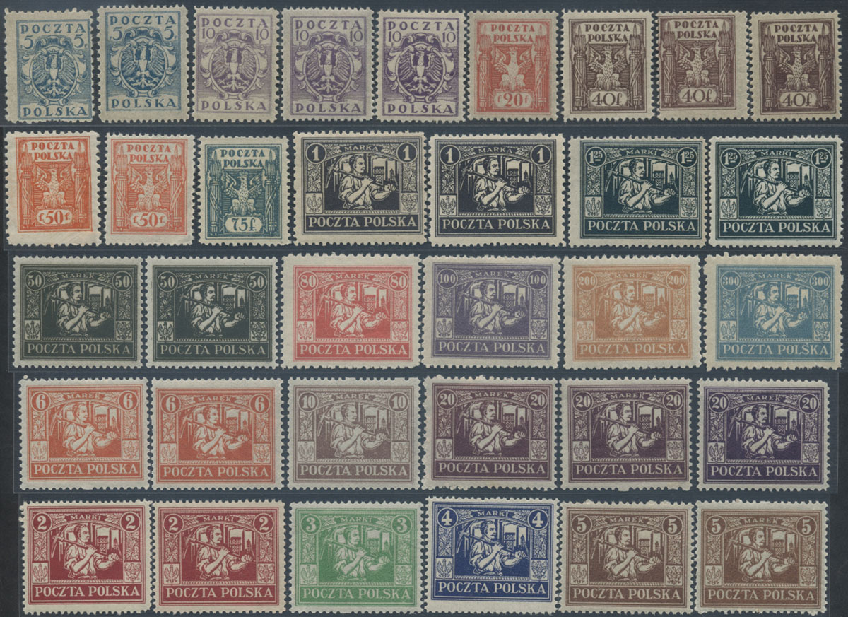 1922 wydanie dla Górnego Śląska, seria z wszystkimi odmianami katalogowymi. | Fi.144-63a, b |