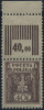 1922 wydanie dla Górnego Śląska, arkusz znaczka za 40 fen. złożony w połowie, na górnym marginesie dodatkowa perforacja pozioma - dziesięć pustopól. | Fi.147 ark. |