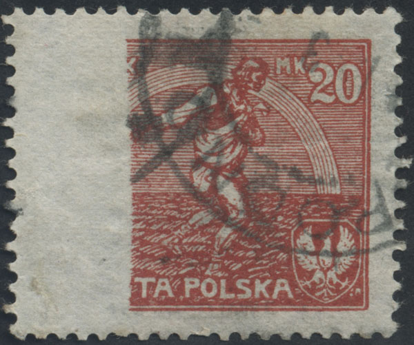 1923 siewca, znaczek makulaturowy z brakiem części rysunku z obiegu pocztowego, gwarancja Walocha. | Fi.127IIMK Mi.163 |