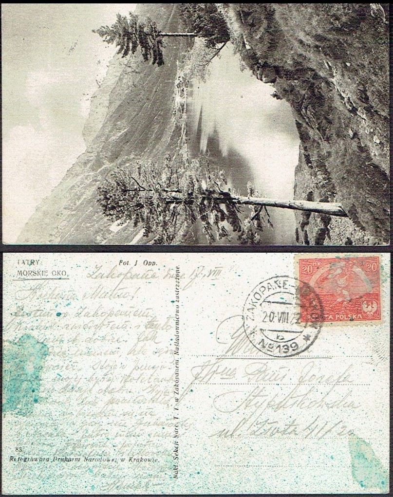 1923 kartka z Zakopanego nadana 5.01.23 do Łodzi opłacona połówka znaczka za 100 mk. zgodnie z obowiązującą taryfą pocztową, opłata uznana, ale znaczek nie ostemplowany. | Fi.137 |