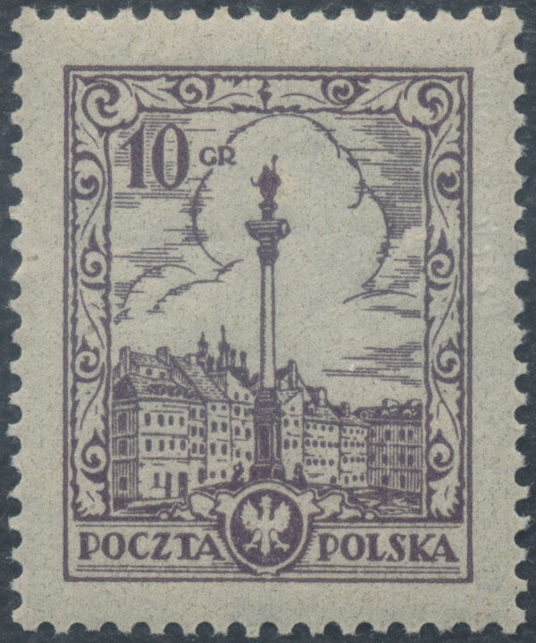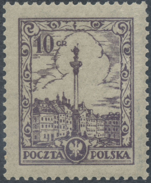 1925 wydanie obiegowe - Kolumna Zygmunta III, znaczek za 10 gr o rzadkim ząbkowaniu liniowym ZL 11¾:11½ na podlepce (Fi. bez podlepki 150.-), dobry stan zachowania. | Fi.209I ZL Mi.237I |