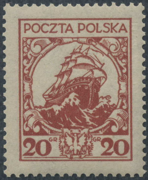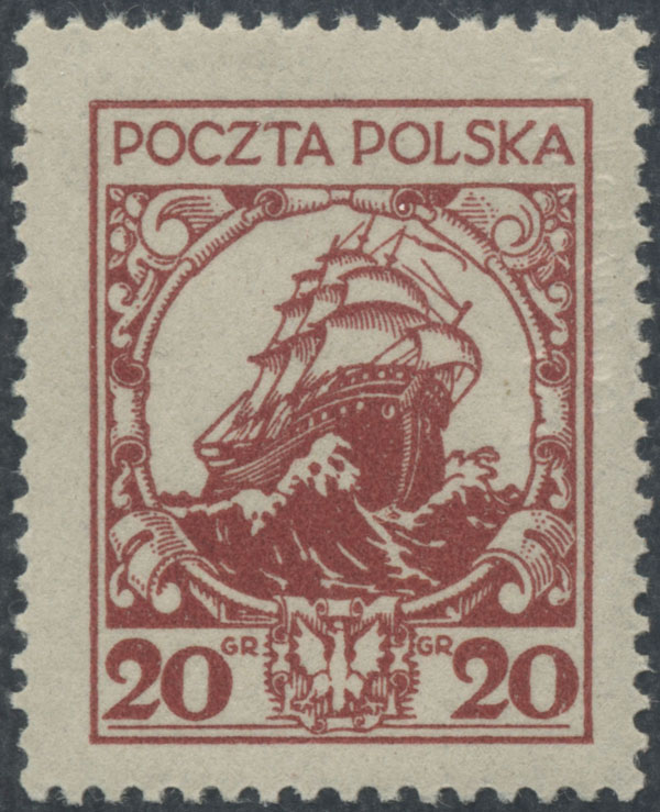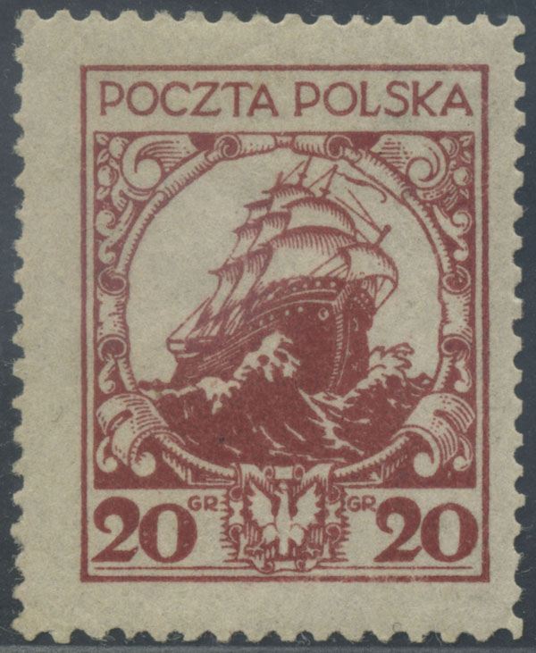 1925 różne rysunki, znaczek w barwie karminowoczerwonej z ząbkowaniem ZL 11½, gwarancja i opis Walocha. | Fi.210I Mi.238I |