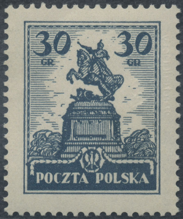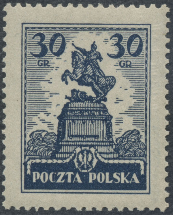 1925 różne rysunki, znaczek w barwie jasnoniebieskiej na papierze w z ząbkowaniem ZR 12¾/12½, gwarancja i opis Walocha. | Fi.214I Mi.242I |