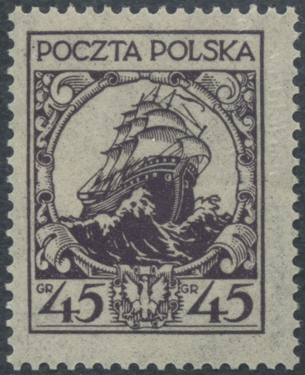 1925 różne rysunki, znaczek w barwie szarofioletowej na papierze y z ząbkowaniem ZR 12½/12¾, gwarancja i opis Walocha. | Fi.215 Mi.243 |