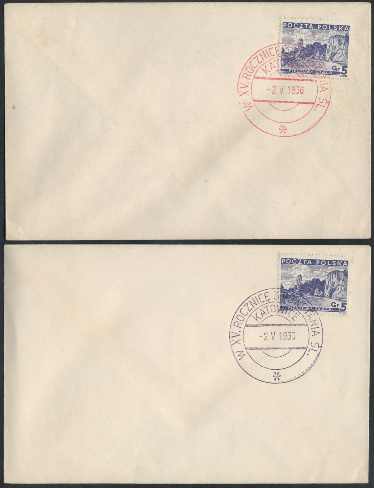 1936 stempel okolicznościowy "W XV ROCZNICĘ 3 POWSTANIA ŚL." Katowice w różnych kolorach. | Fi.280 |