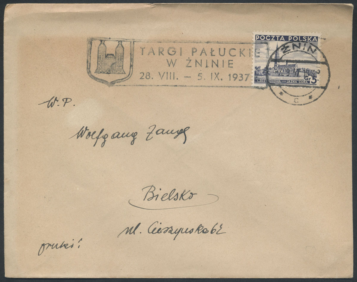 1937 stempel okolicznościowy "TARGI PAŁUCKIE W ŻNINIE 28.VIII. - 5.IX.1937" Żnin. | Fi.294 |
