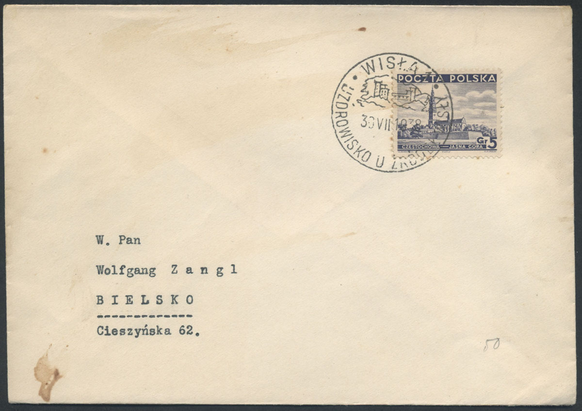 1938 stempel okolicznościowy "LETNISKO w ZACHODNIM BESKIDZIE" Rajcza koło Żywca. | Fi.294 |