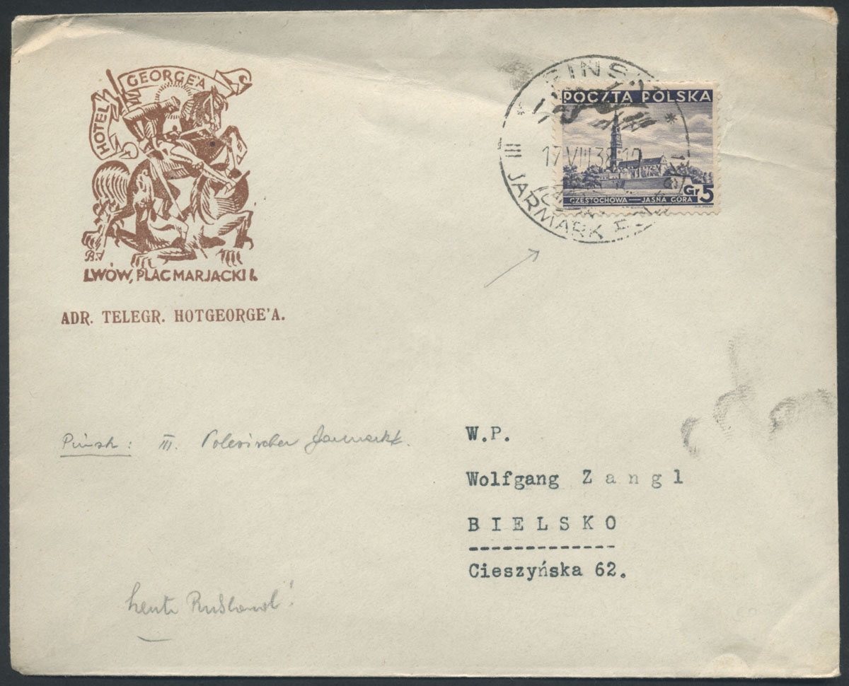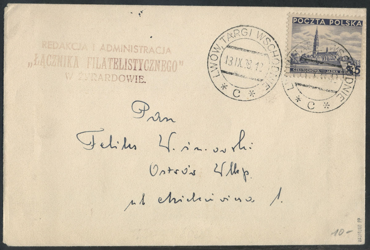 1938 stempel "Pośrednictwo Pocztowe "ORBIS" LWÓW Legionów 29". | Fi.294 |