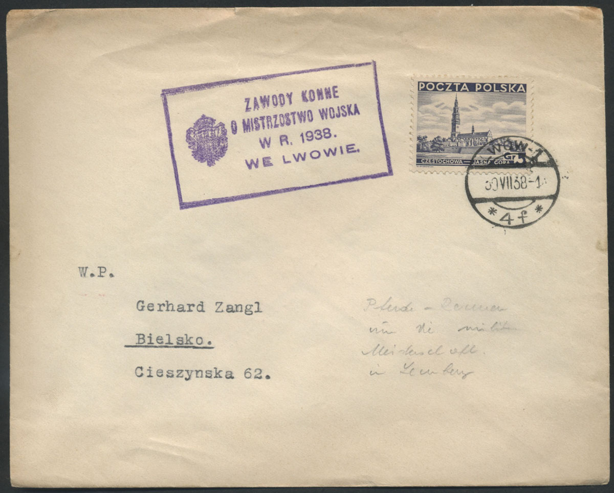 1938 stempel okolicznościowy "ZAWODY KONNE O MISTRZOSTWO WOJSKA W R. 1938. WE LWOWIE" Lwów 1. | Fi.294 |