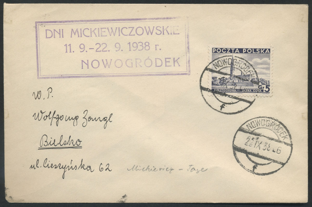 1938 stempel okolicznościowy "DNI MICKIEWICZOWSKIE 11. 9.-22. 9. 1938 R. NOWOGRÓDEK" Nowogródek. | Fi.294 |