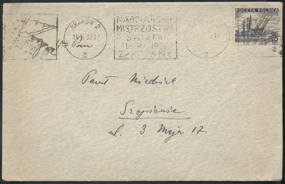 1938 stempel okolicznościowy "NARCIARSKIE MISTRZOSTWA ŚWIATA ZAKOPANE" Kraków 2. | Fi.294 |