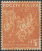 1938 20. rocznica odzyskania niepodległości, znaczek makulaturowy z przesuniętą perforacją poziomą i rozmazaną farbą bez gumy - znaczna część makulatury była wyłapana w trakcie produkcji i nie była gumowana, a same znaczki "wyszły" z drukarni w trakcie oblężenia Warszawy w 1939 roku. | Fi.315MK |