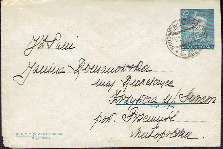 1938 kartka nadana w ambulansie pocztowym nr 163 na trasie Stróże - Lwów, kasownik z wyróżnikiem a. | |