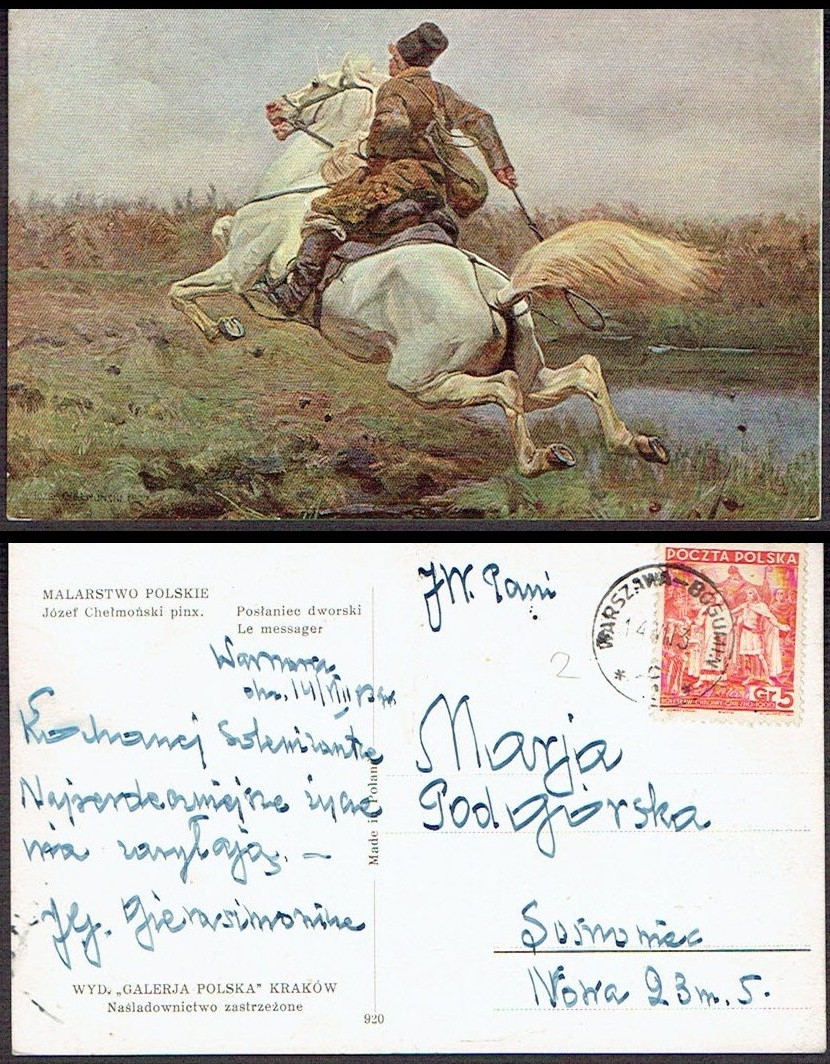 1939 kartka nadana w ambulansie pocztowym nr 2 na trasie Warszawa - Bogumin, datownik z wyróżnikiem c, datownik z tego ambulansu jest rzadko spotykany. | |