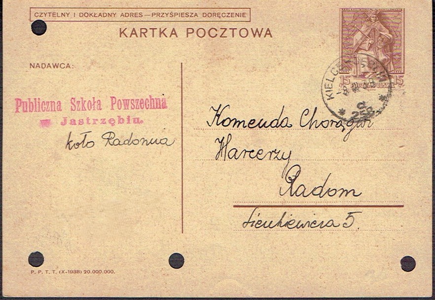 1939 kartka nadana w ambulansie pocztowym nr 258 na trasie Kielce - Dęblin, datownik z wyróżnikiem a. | |