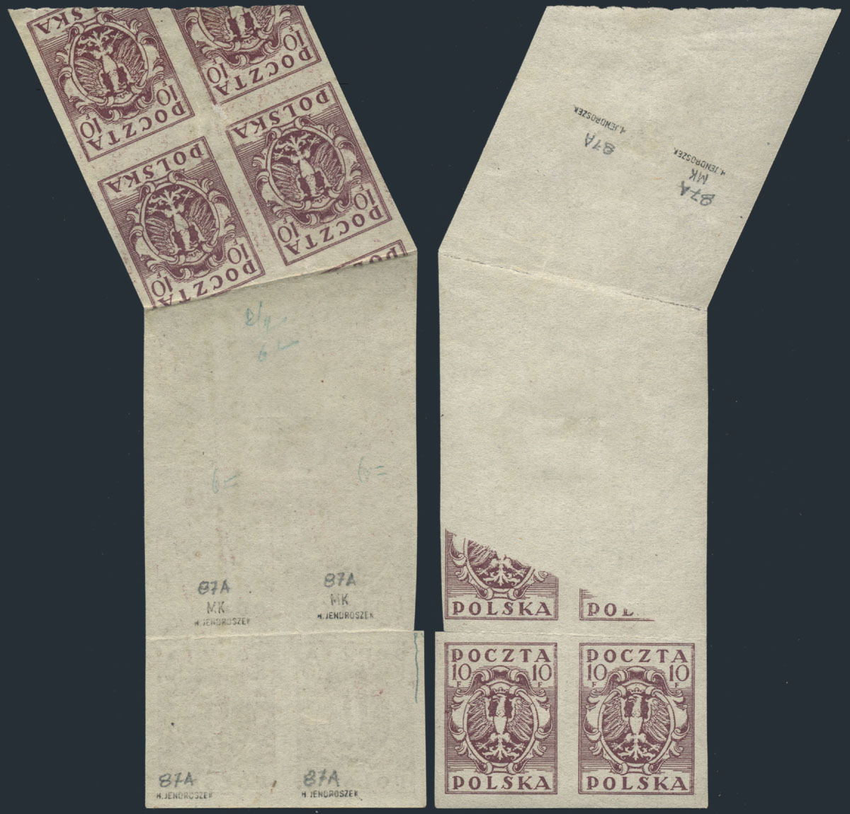 1919 wydanie w walucie markowej, makulaturowy wieloblok z drukiem na zagiętym papierze, gwarancja Jendroszek. | Fi.87A MK Mi.92 |