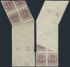 1919 wydanie w walucie markowej, marginesowy czworoblok prób znaczka za 15 fen. w kolorze oliwkowoszarym, dwie dolne próby z silnym odciskiem listwy ochronnej, gwarancja - nie podniesiona,. | Fi.88 P9 Mi.92 |