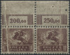 1919 wydanie w walucie markowej, marginesowa parka ciętych znaczków za 2,50 mk. z niekatalogowanym błędem "niedodruk dolnej części znaczka", co ciekawe rzadka brązowa guma, jak u szaroczerwonawokarminowych prób znaczka o nominale 1 mk., gwarancja i opis Schmutz. | Fi.95A B Mi.99 |