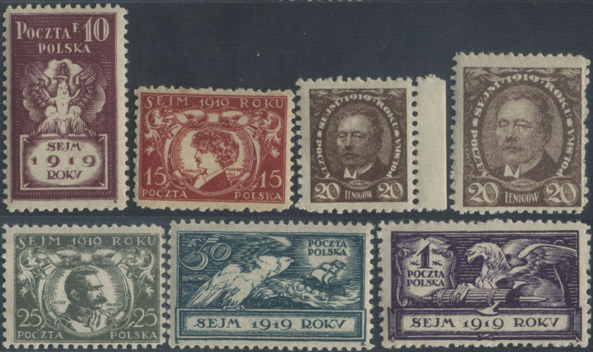 1919 pierwsza sesja Sejmu Ustawodawczego, seria. | Fi.107-13 Mi.123-9 |