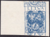 1920 godło Litwy Środkowej, podwójny druk marginesowej próby znaczka za 1 mk. w rzadszym kolorze szaroniebieskim na papierze gąbczastym gazetowym, gwarancja. | Fi.2 P11 Dp |