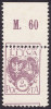 1920 godło Litwy Środkowej, marginesowa makulatura ciętego znaczka za 1 Mk. o podwójnym znacznie przesuniętym w pionie druku, niegumowana, gwarancja Walocha. | Fi.2A MK Mi.2B |