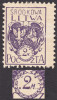 1920 godło Litwy Środkowej, znaczek z przesuniętą perforacją, gwarancja Jendroszek. | Fi.20B MK |