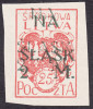 1921 wydanie z dopłatą NA ŚLĄSK, czysty znaczek za 1+2 mk. ze znacznie przesuniętym w górę ząbkowaniem poziomym, gwarancja Krawczyk. | Fi.26 B Mi.26A |