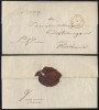 1850 około, kompletny składany list z urzędu celnego w Praszce zamknięty pieczęcią lakową urzędu pocztowego do Piotrkowa, stempel Praszki typ VIIIA, stempel tranzytowy z Sieradza typu IIIC na odwrocie. | |