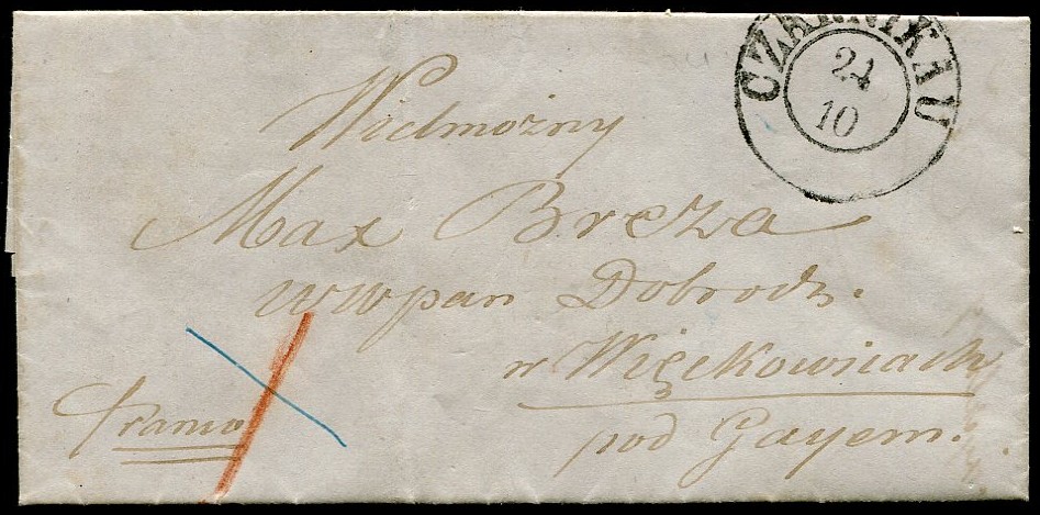 1852 Czarnikau (Czarnków), kompletny składany prywatny list pisany po polsku. | |