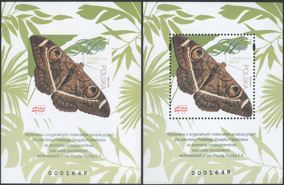 2025 motyle - ćma, bloczki beznominałowe wykonane przez PWPW dla członków PZF na promocje kolekcjonerstwa w nakładzie po 5500 sztuk. | Fi.5455ND A, B |