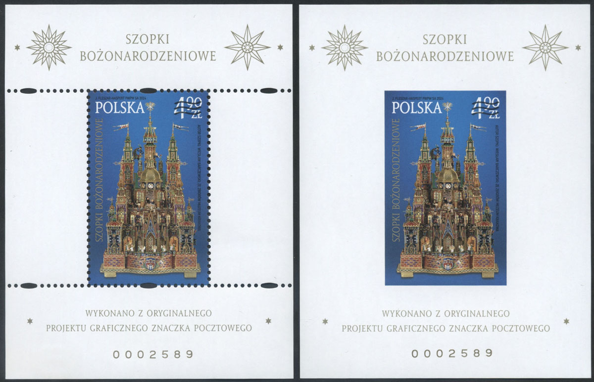 2024 szopki krakowskie, bloczki beznominałowe wykonane przez PWPW z oryginalnych materiałów produkcyjnych w nakładzie 6.000 sztuk. | Fi.5485A, B ND |