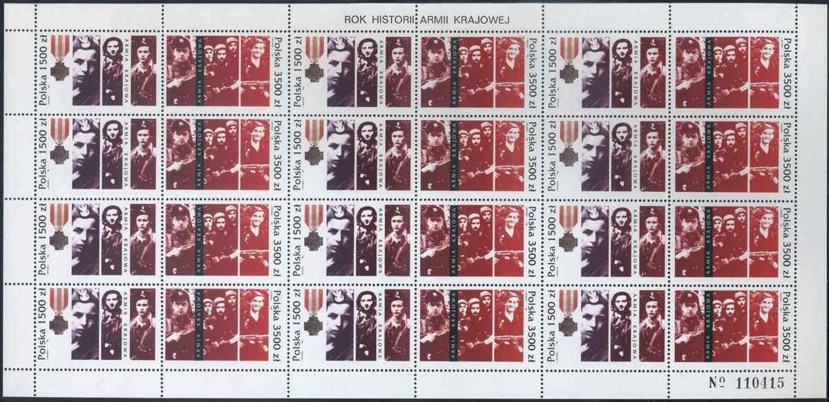 1992 Rok historii Armii Krajowej, arkusz czysty, bardzo dobry stan zachowania. | Fi.3265-6 ark. Mi.3413-14 |