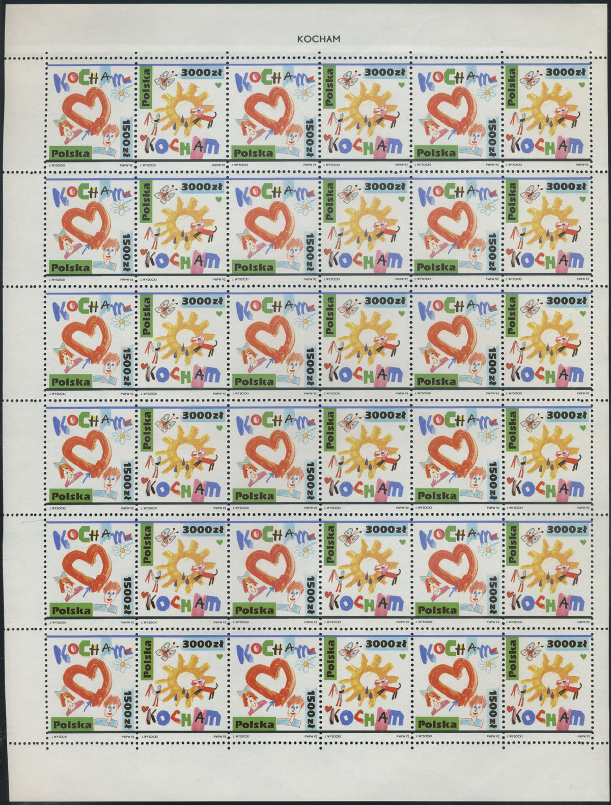 1992 rysunki dziecięce - "Kocham", arkusz sprzedażny. | Fi.3238-9 ark. Mi.3386-7 |