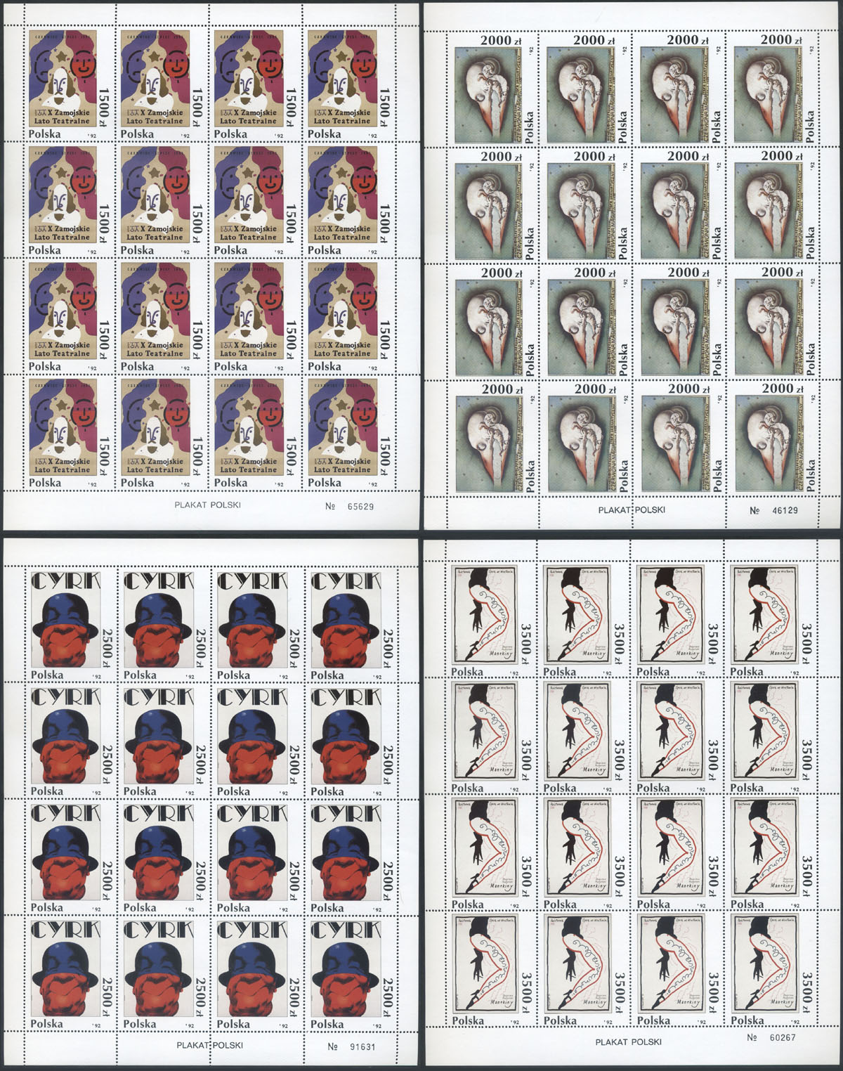 1992 plakat polski, seria w arkuszach sprzedażnych. | Fi.3257-60 ark. Mi.3405-8 |
