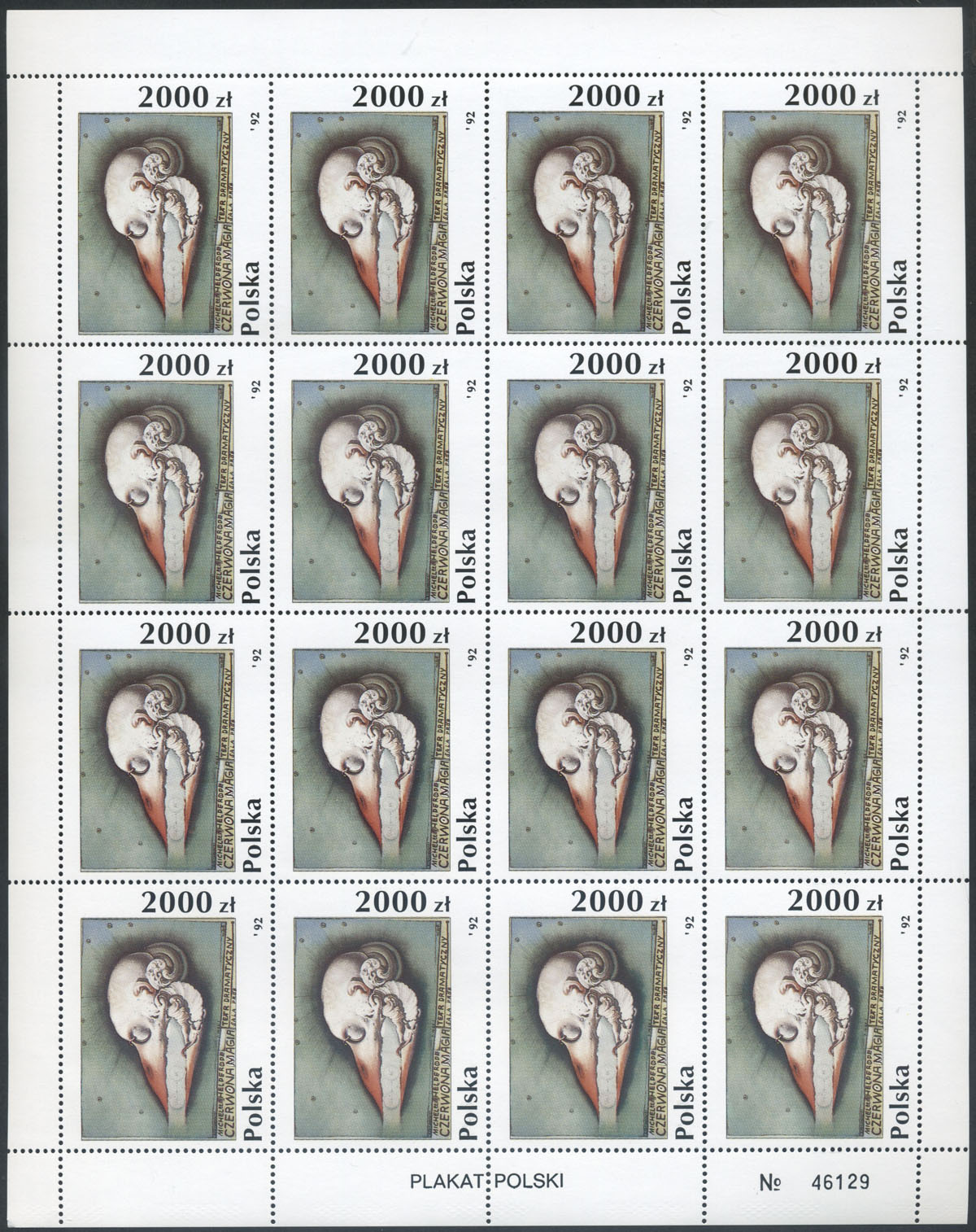 1992 plakat polski, arkusz sprzedażny. | Fi.3257 ark. Mi.3405 |